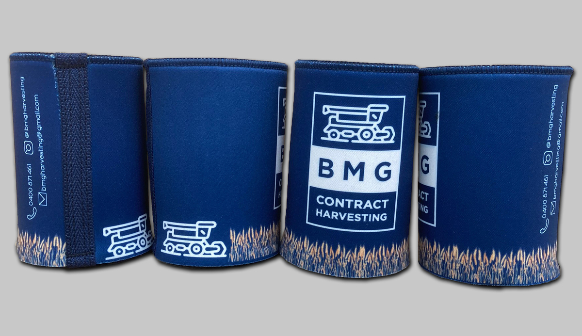 Includes: Full colour wrap around printed, A glued base, Top overlocking, & Side seam tape. Making these the most durable stubby holders you will ever use.