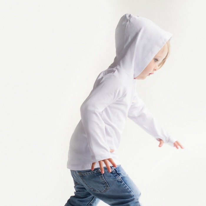 Our Basic Long Sleeve Hoody is a staple for kids on the go. Perfect for layering, and made from soft, mid weight cotton. For extra style we’ve included cosy thumbholes. Available in a range of gorgeous colours that make this the perfect design base for year round collections. --- Relaxed fit 190 GSM mid weight Cotton Jersey: 95% Cotton / 5% Elastane Double needle hem stitching Fully lined hood Scoop Hem