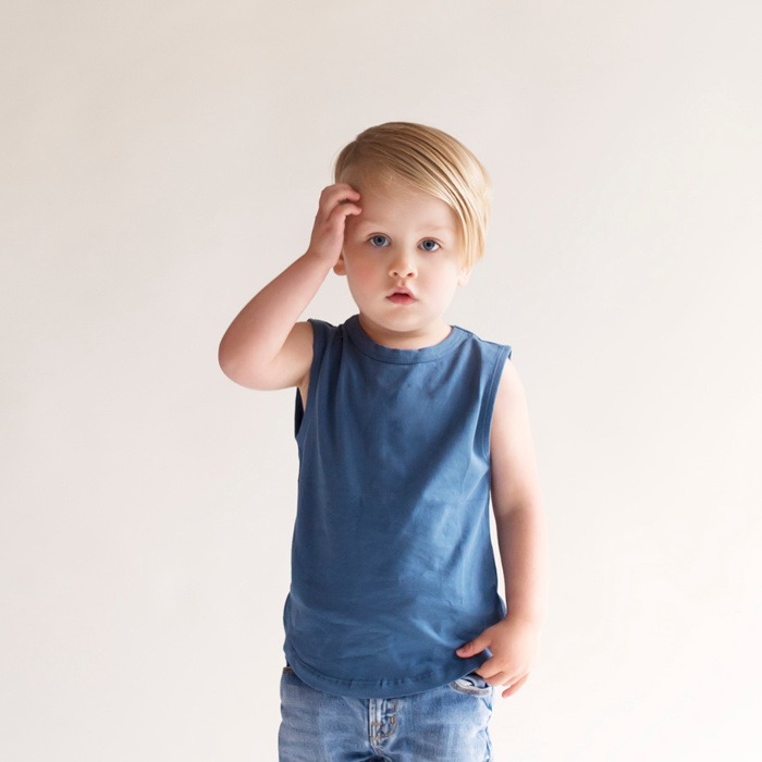 Our relaxed fit, Muscle Tanks are made from mid weight soft cotton and prepped for your creative inspiration. Tough enough to endure the hardest workout that kids dish out, this classic style has a scoop hem and inner sleeve binding on the armholes. --- Relaxed fit Scoop hem 190 GSM mid weight Combed cotton jersey: 95% Cotton / 5% Elastane Self fabric Collar and Armhole binding Double needle hem stitching