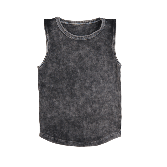 Our relaxed fit, Stonewash Muscle Tanks are made from mid weight, soft cotton, and prepped for your creative inspiration. Tough enough to endure the hardest workout that kids dish out, this classic style with scoop hem, comes in black stonewash. --- Relaxed fit Scoop hem 190 GSM mid weight 95% Cotton 5% Elastane combed cotton jersey Self fabric Collar and Armhole binding Double needle hem stitching *Note- Each garment may vary slightly in shade and size