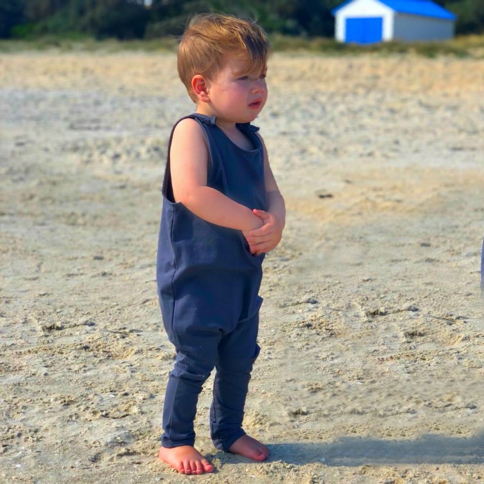 Our Slouch Rompers are super soft and cosy – perfect for little trend setters. A sleeveless style for hot summers, or matched with a tee, between seasons. Brushed metal studs provide some street edge, while extra length in the legs allow plenty of room for growing. --- Loose fit 190 GSM mid weight 95% Cotton 5% Elastane Cotton Jersey Generous in length to allow for growth Self fabric binding Double needle stitching Brushed metal snap studs Low fire danger warning label from sizes 000-2 Tearaway labels on collar Match our slouch rompers with a basic tee in cooler weather. Find out more about our wholesale baby clothes.